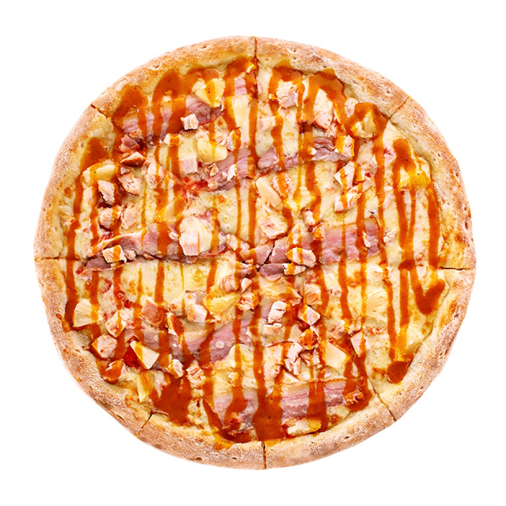 Томатный соус, сыр «Моцарелла», бекон, филе цыплёнка, соус «Карри»