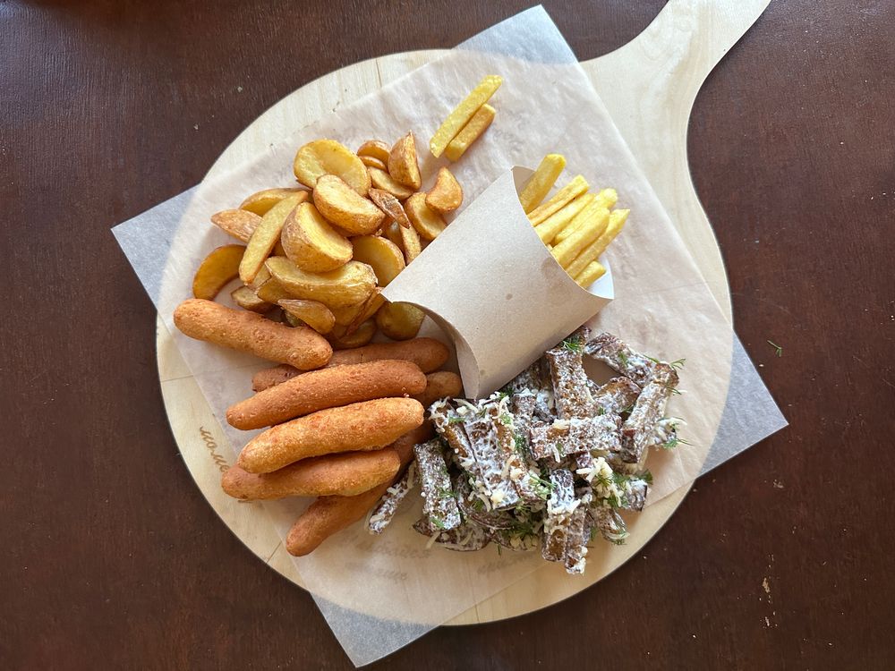Сырные палочки,картофель фри,картофель по деревенски,чесночные гренки